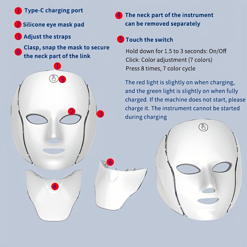 LEVURA™ 7-цветна LED маска /лице и шия/